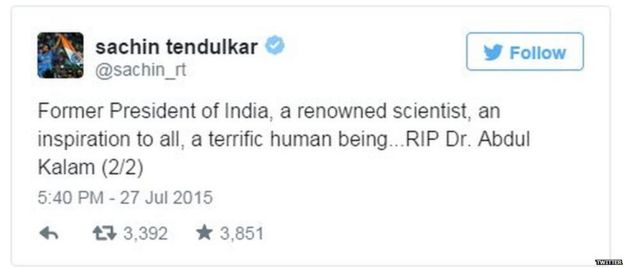 Mr Kalam served as India's 11th president from 2002 to 2007 and was popularly known as "Missile Man" after pioneering the country's military missile programme.
